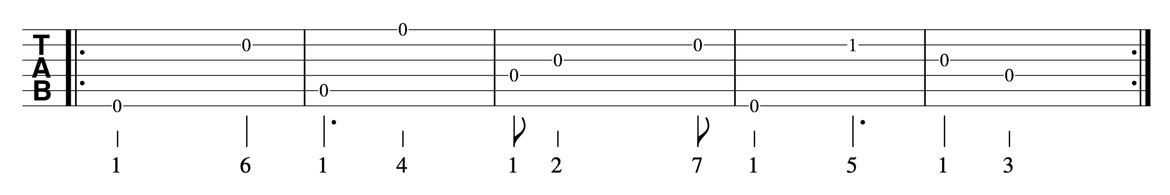 Figure 1. Melody composed from a 5:7 polyrhythm performed at Saturn = Mount Wilson Observatory on Winter Solstice, 21-December 2018 and presented in track 02. Ascendant Cancer 29° 1st. Venus Tuning = E-F#-B-F#-B-E determined by local apparent Moon in Taurus.![]()